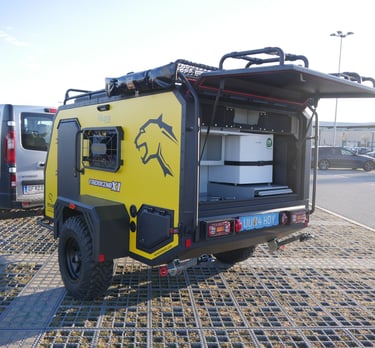 The Decamp Cross X1+ combines lightweight design, comfort, and off-road capability in a compact camper trailer. Its low weight makes it easy to tow with almost any car, ensuring effortless maneuverability. High-quality materials provide excellent insulation – keeping you cool in summer and warm in winter. With smart storage solutions, modern features, and an optional rooftop tent, it comfortably accommodates up to 5 people. Perfect for adventurers who crave freedom!